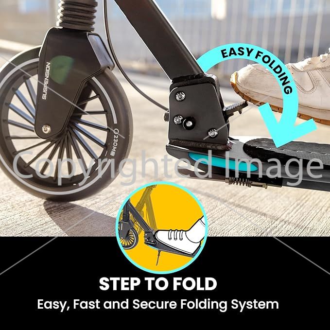 Safety is a top priority for any mode of transportation, and the AERO MOBILITY Big Wheels Kick Scooter does not compromise in this regard. It features a reliable rear fender brake that provides quick and controlled stopping power. The brake is easy to engage, even for younger riders, and is designed to minimize wear and tear on the wheels.