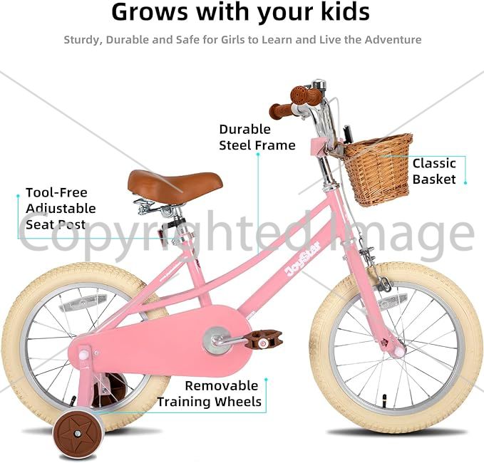Equipped with a sturdy steel frame, the JOYSTAR bike is built to withstand the rigors of childhood adventures. The frame is designed to accommodate multiple wheel sizes (12”, 14”, 16”, 18”, and 20”), allowing the bike to grow with the child, ensuring years of use.