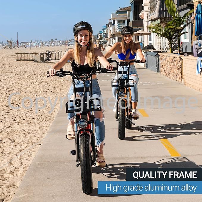 Equipped with 20" x 4" fat tires, the Juntos e-bike is built to tackle various terrains with ease. These oversized tires provide excellent traction and stability, whether you're cruising down paved roads, navigating rocky trails, or traversing sandy beaches. The wider surface area of the tires also contributes to a smoother ride, absorbing shocks and minimizing vibrations.
