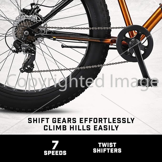 - Fat tire mountain bicycle perfect for all-terrain adventures, 24-inch wheels that fit to riders 4'8" to 5'6" tall, perfect for ages 8 and up