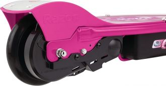 The Razor Power Core E100 shares many similarities with its predecessor, the Razor E90. Both models feature a 100-watt motor and a hand operated front brake. However, the Power Core E100 benefits from the extended ride time provided by the Power Core technology, as well as improved stability due to the larger front tire.