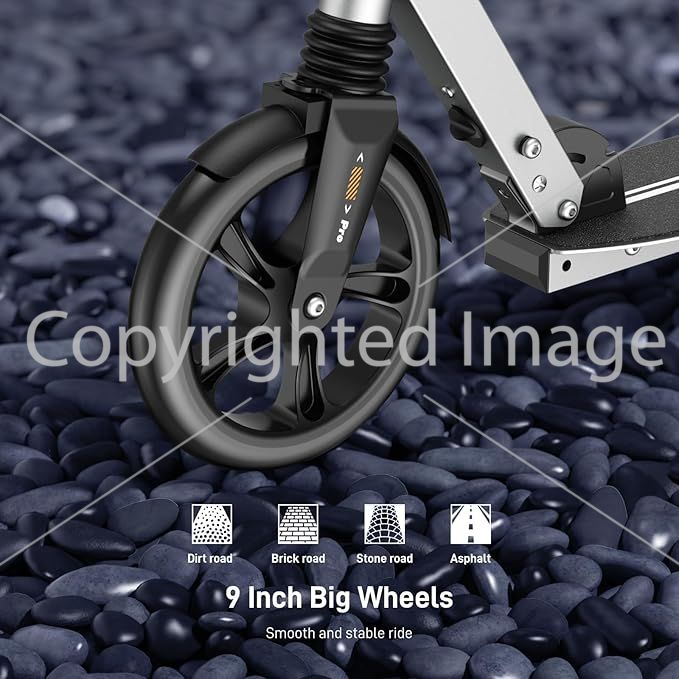 Equipped with large 8-inch wheels, this scooter provides excellent stability and smoothness on various surfaces. These big wheels help absorb shocks and bumps, ensuring a comfortable ride even on rough terrain. They are also made from high-quality materials that offer durability and longevity.